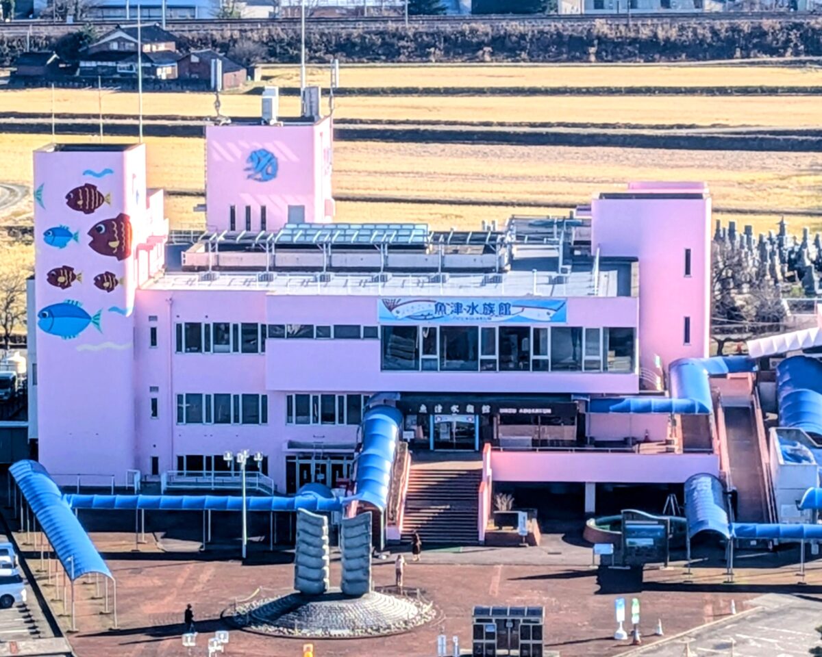 魚津水族館の外観がさくら色に生まれ変わりました。
